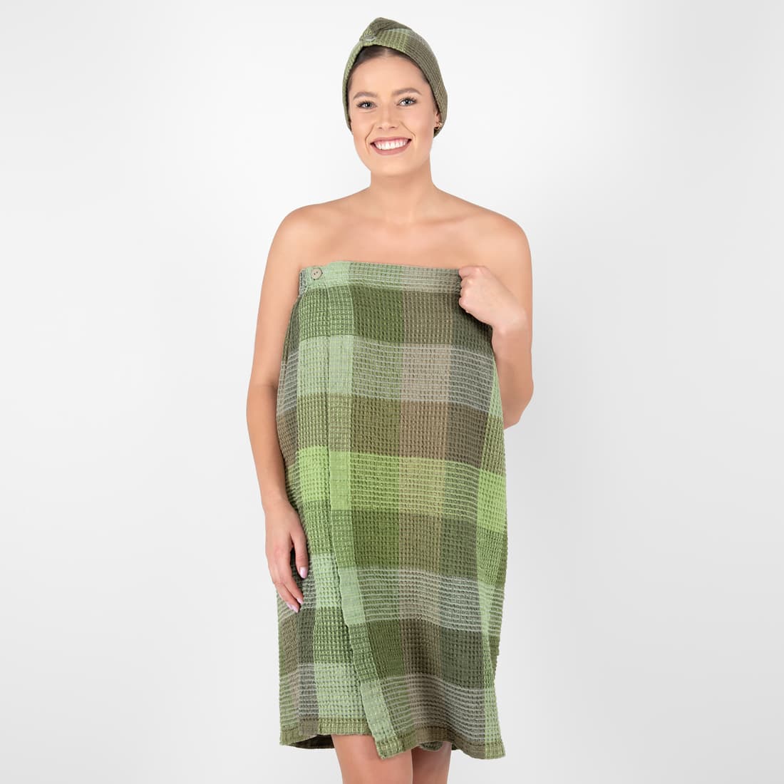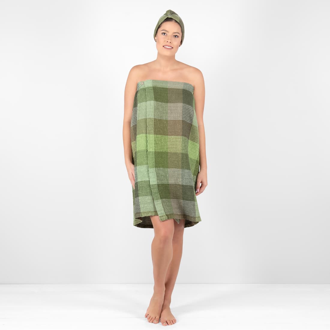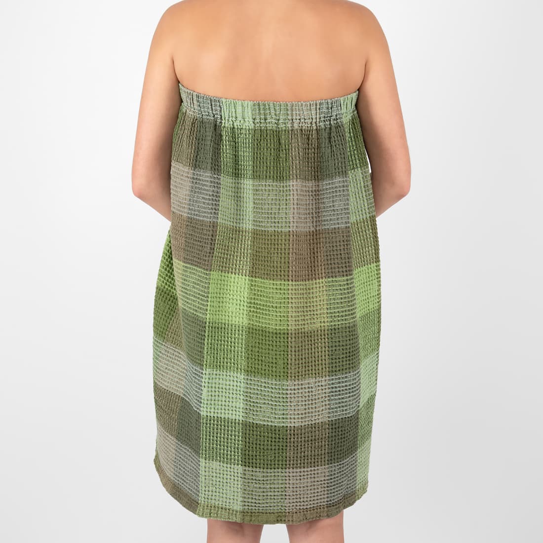 • linen green wrap towel from backside.