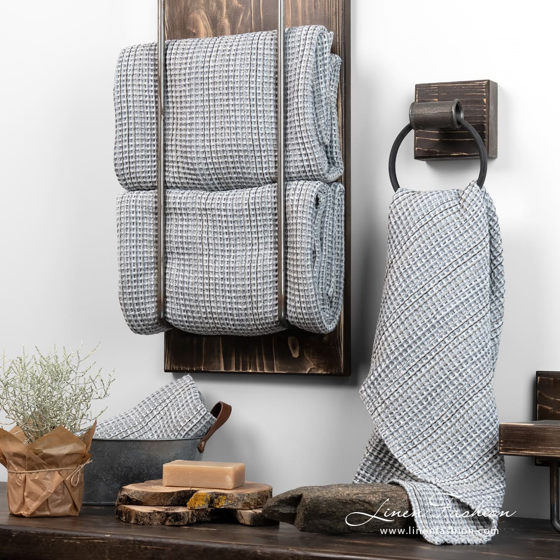 - Details: with hanging loop, towel set of two is tied in a wide ribbon