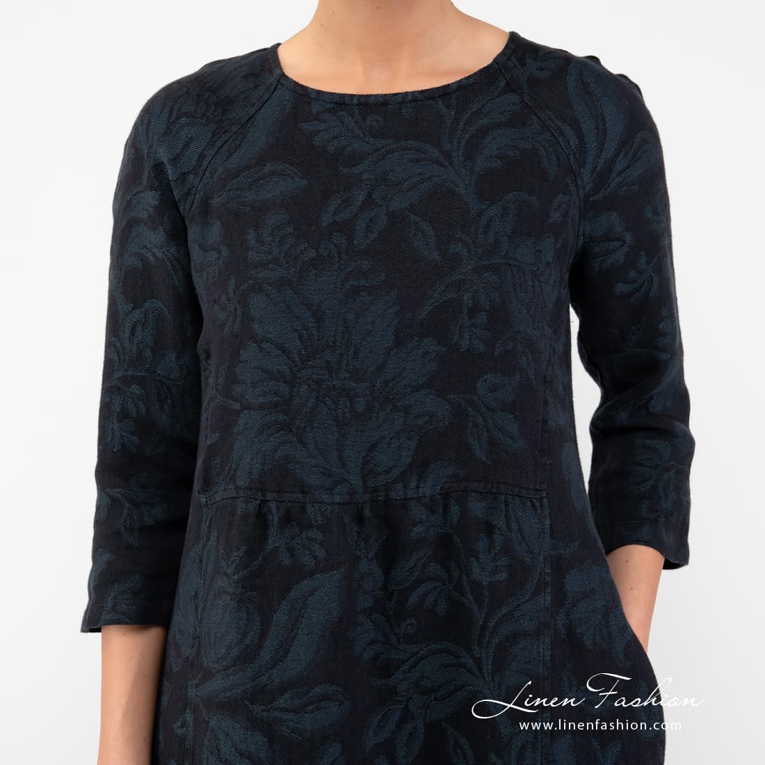 - Product model: A-line silhouette, loose fit, midi-length, 3/4 sleeves