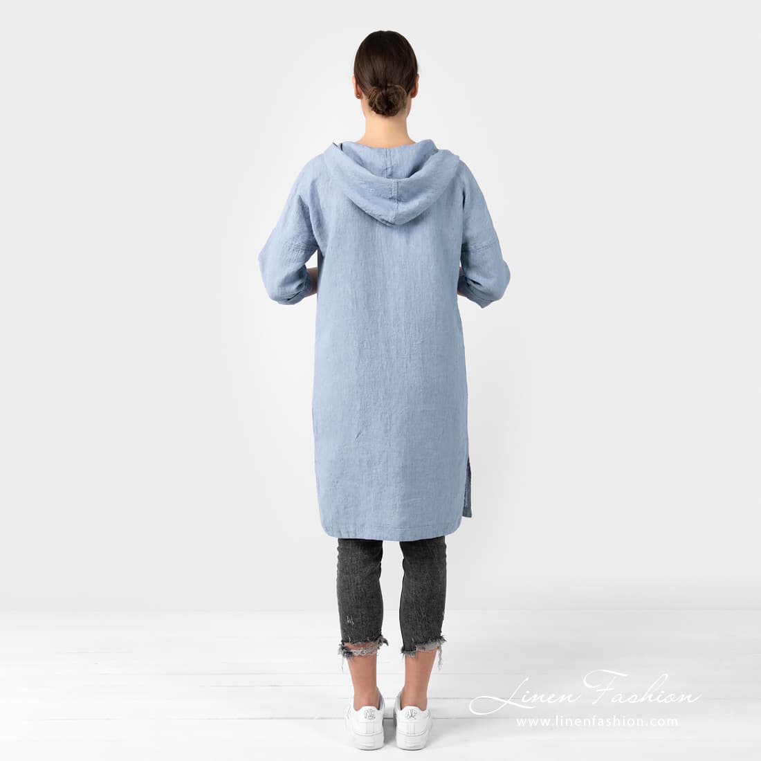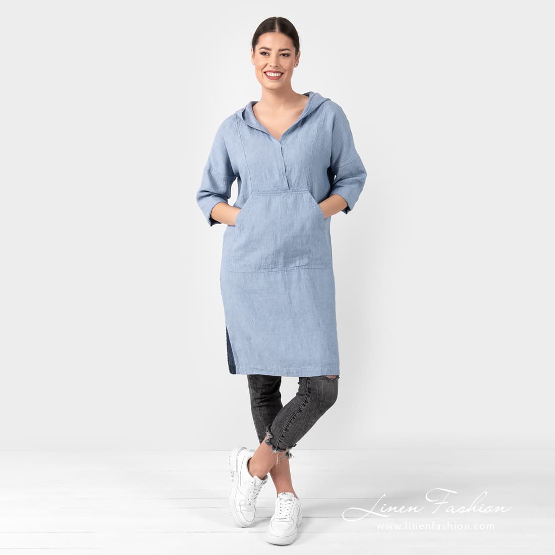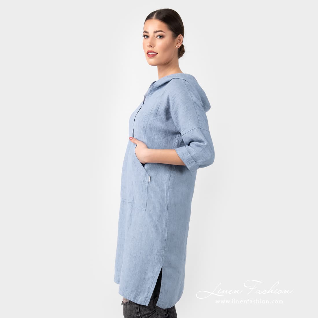 - Details: 3/4 sleeves; large front pocket; hoodie; slits on the sides