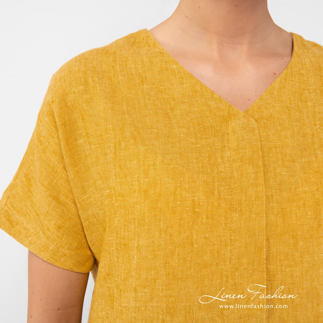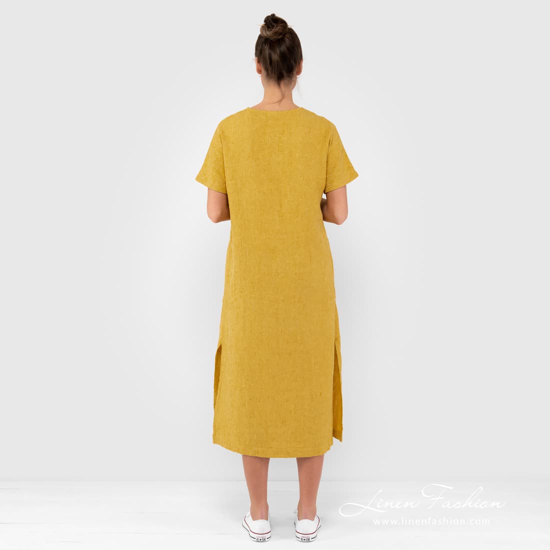 • Product model: A-line silhouette, loose fit, midi-length, short sleeves