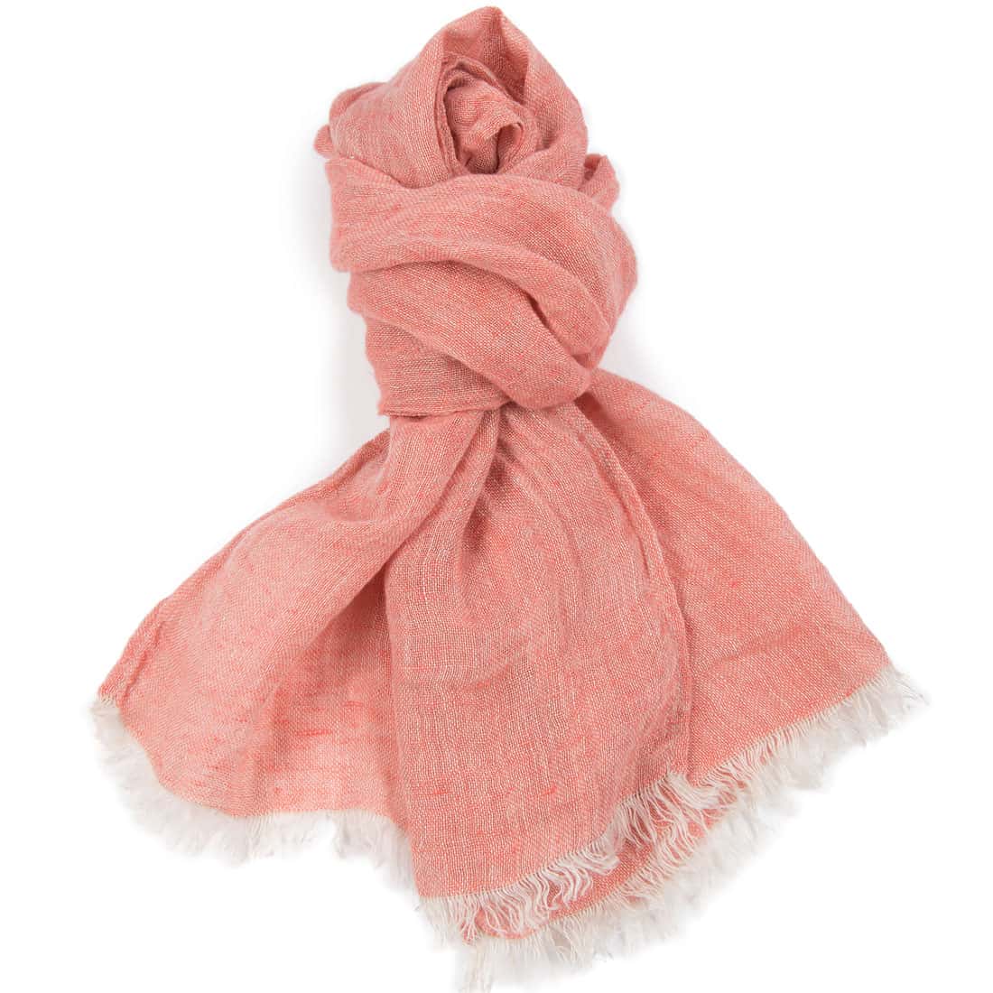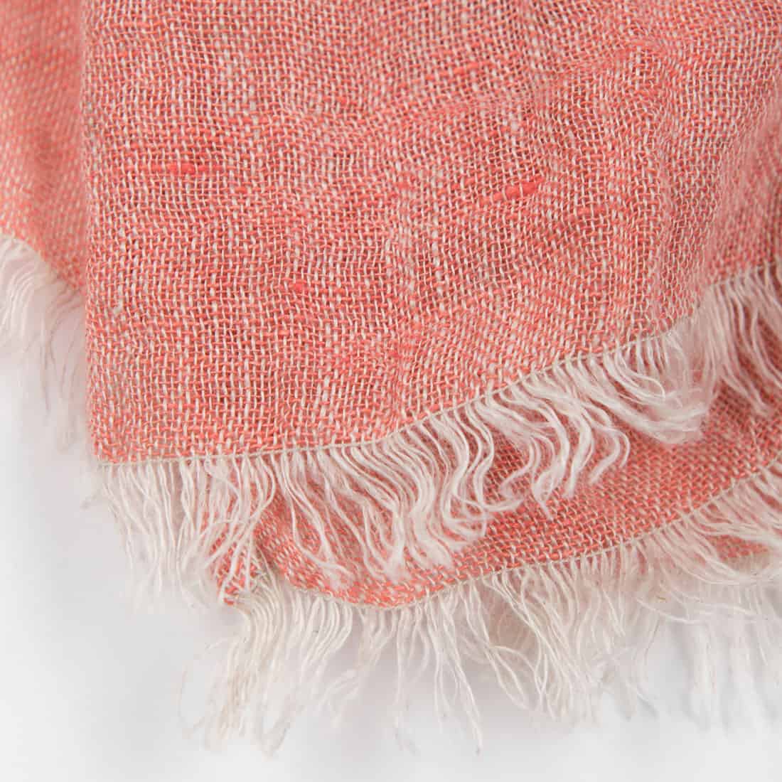 - Colour: mix of natural linen (undyed, brownish-grey) and salmon red yarns