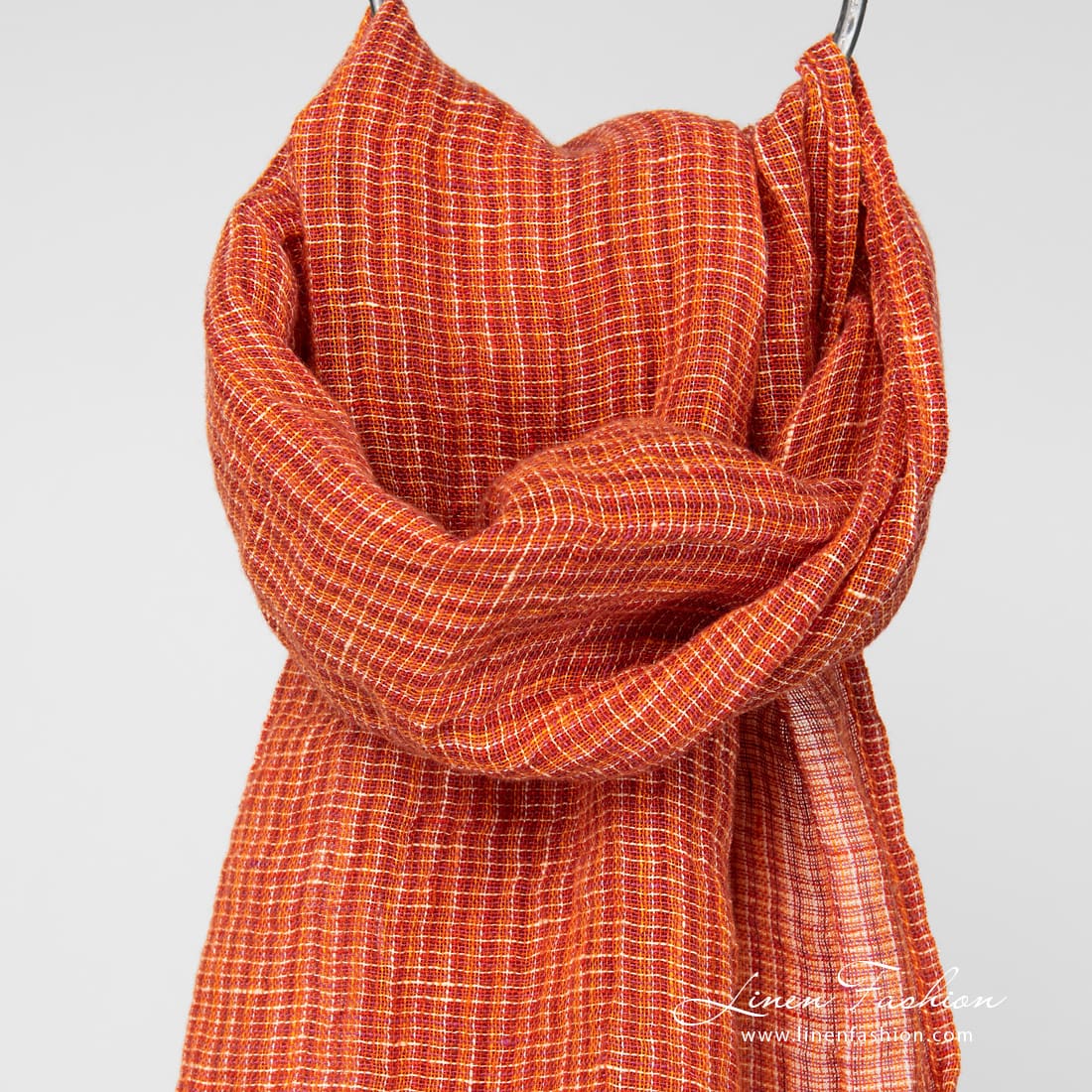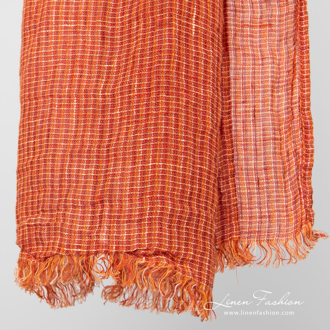 - Colour: mix of several shades of orange, brick red, red, light beetroot red, dark pink and cream colour yarns