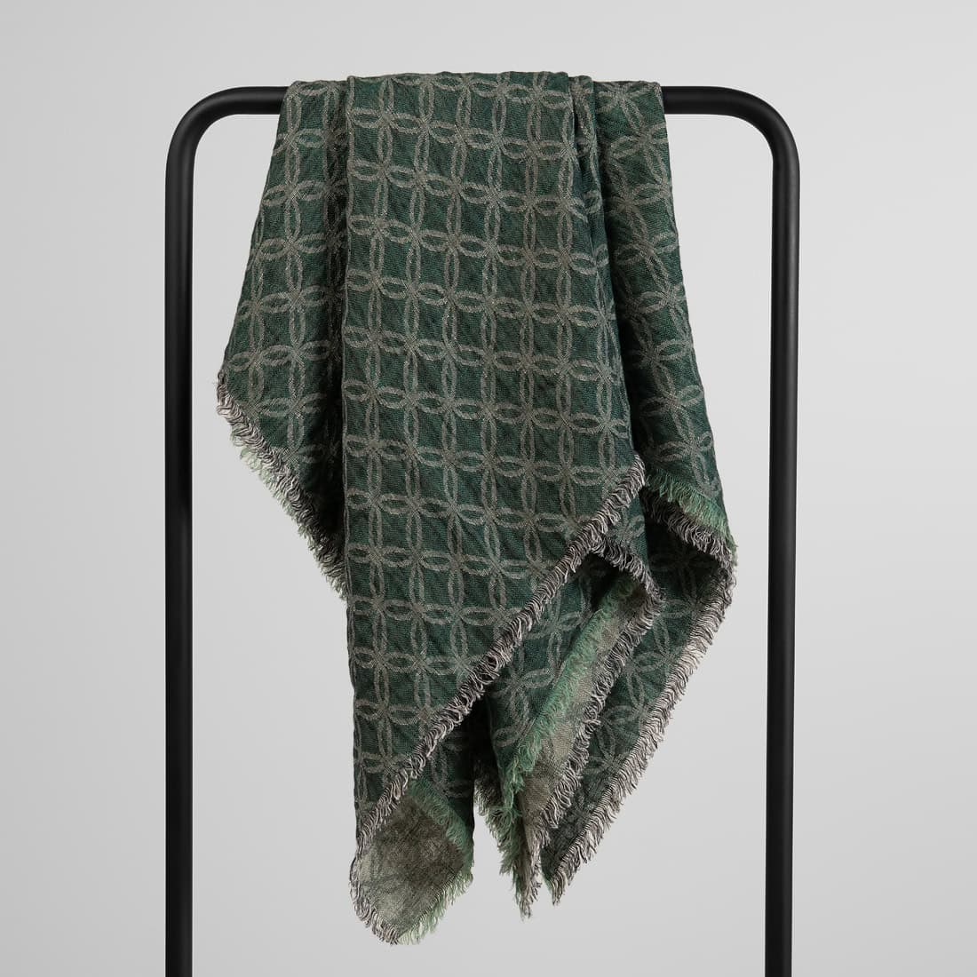 - Colour: mix of black, natural linen (undyed, brownish-grey), dark green-grey and dark green yarns