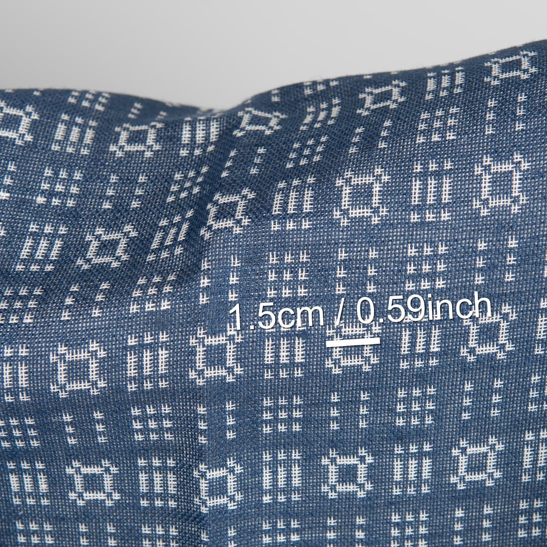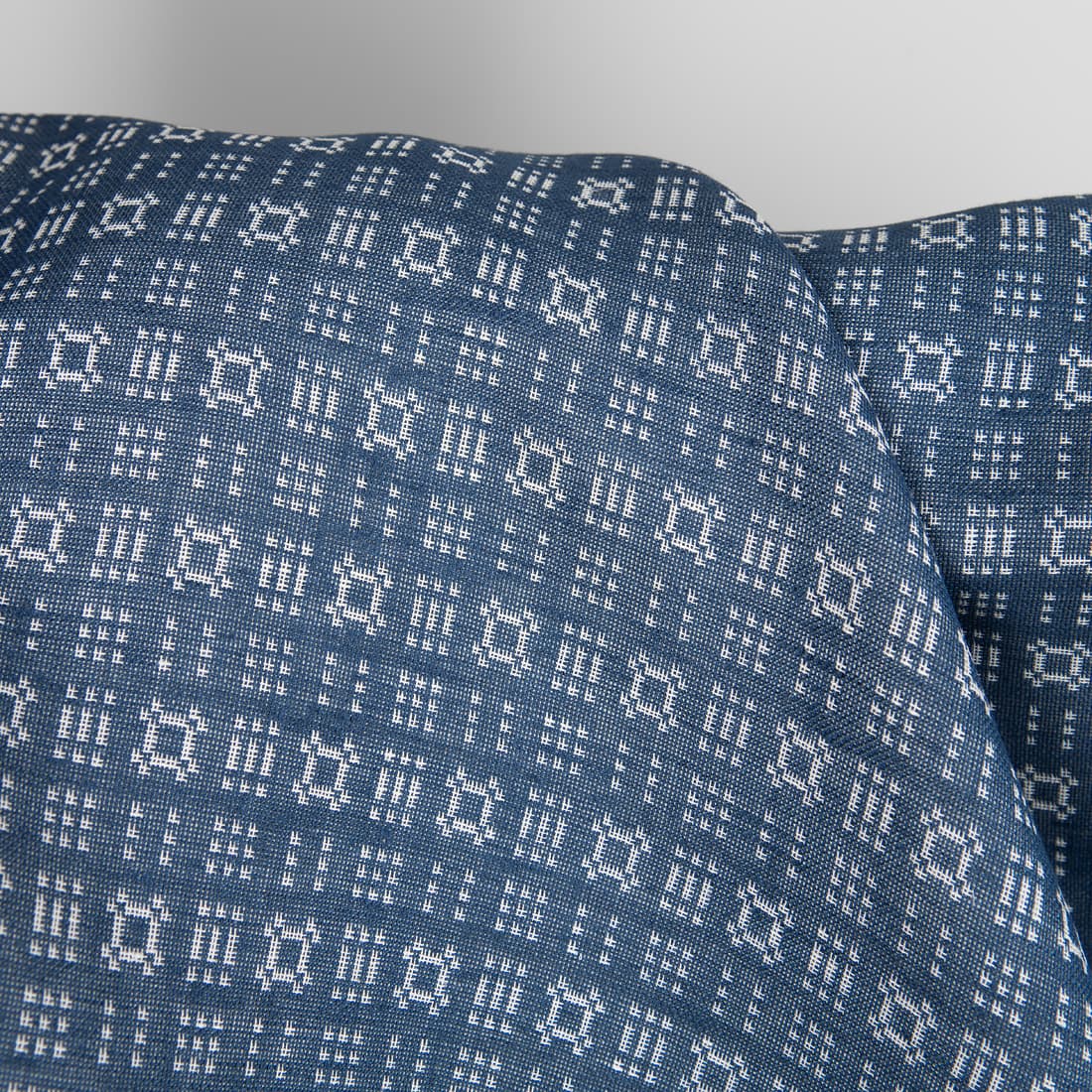 • Linen cotton fabric white and dark blue geometric pattern, double-layer
