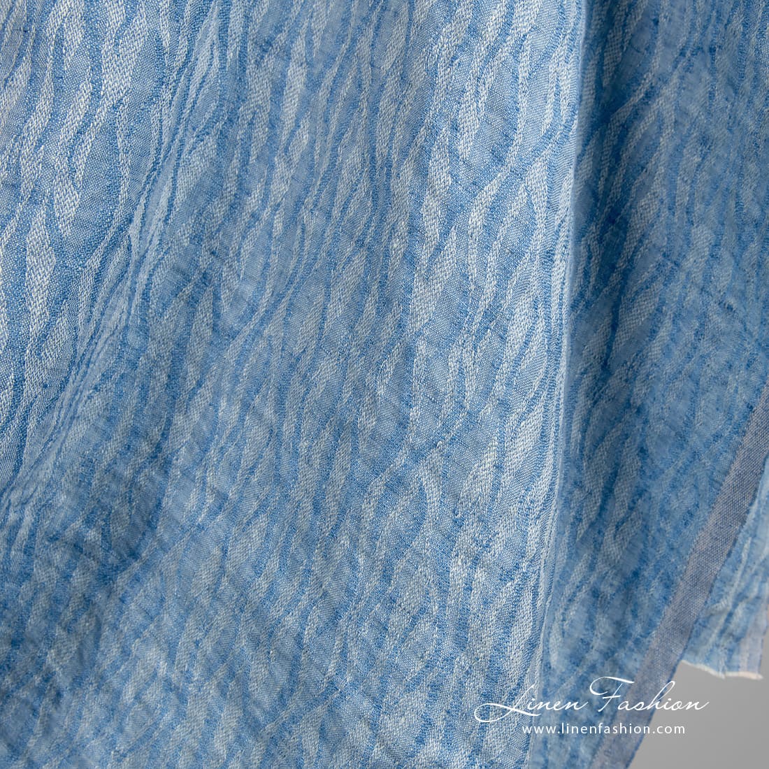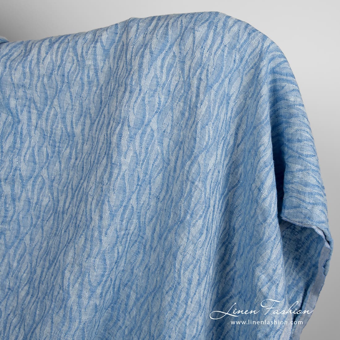 • Blue jacquard linen fabric, perfect for clothes and home textile