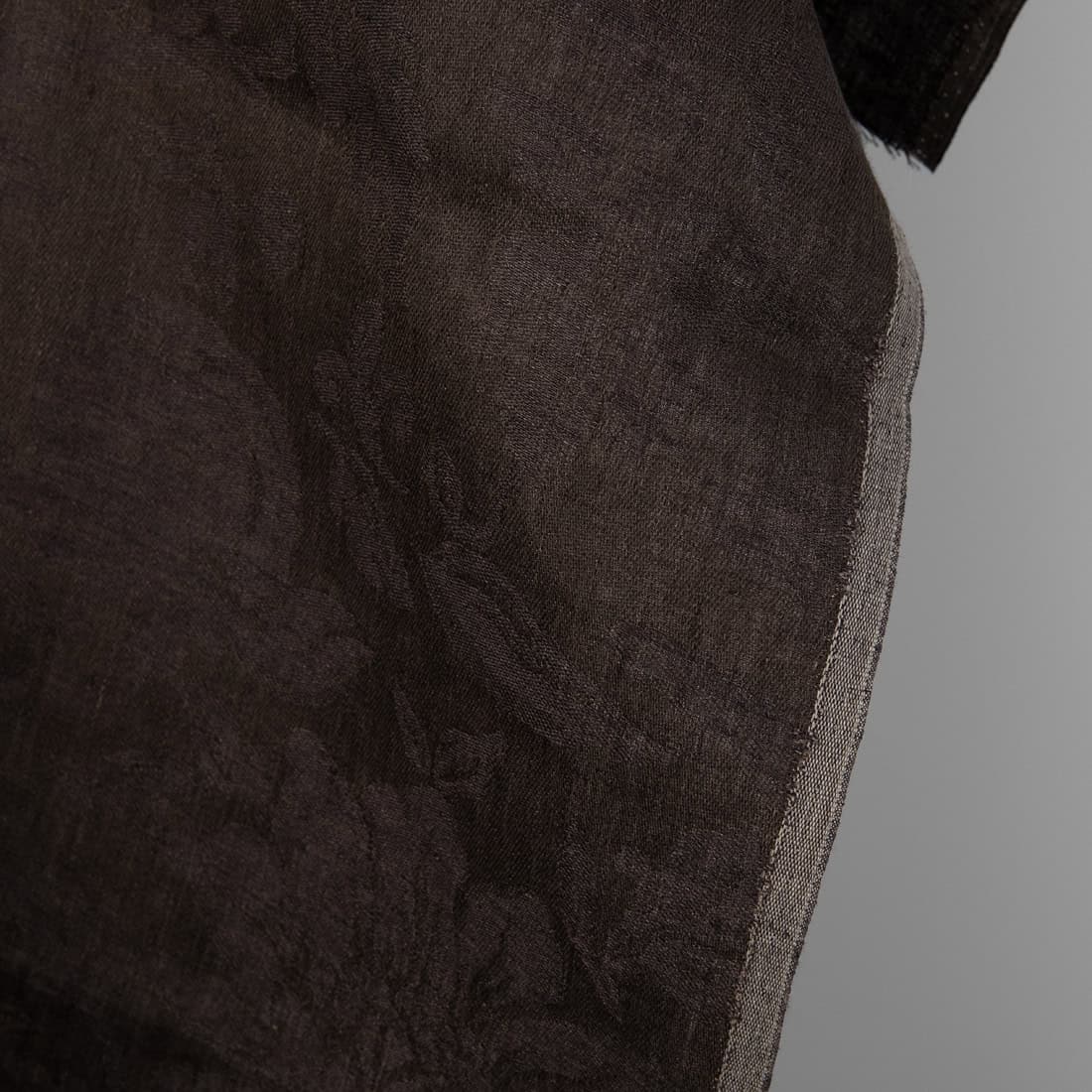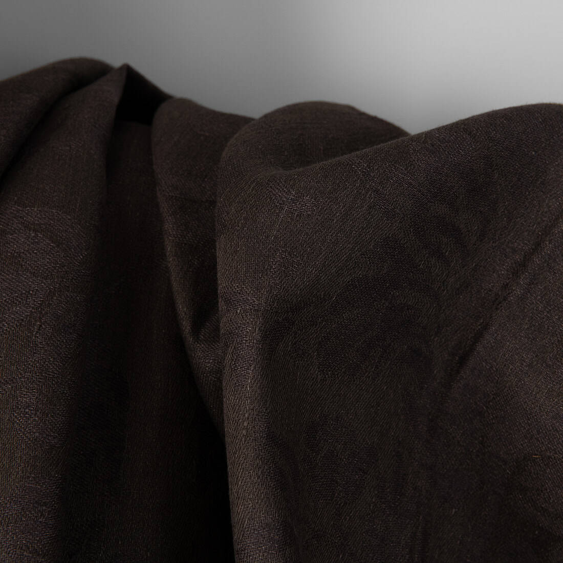 • Dark brown jacquard linen fabric with flowers, 100% linen