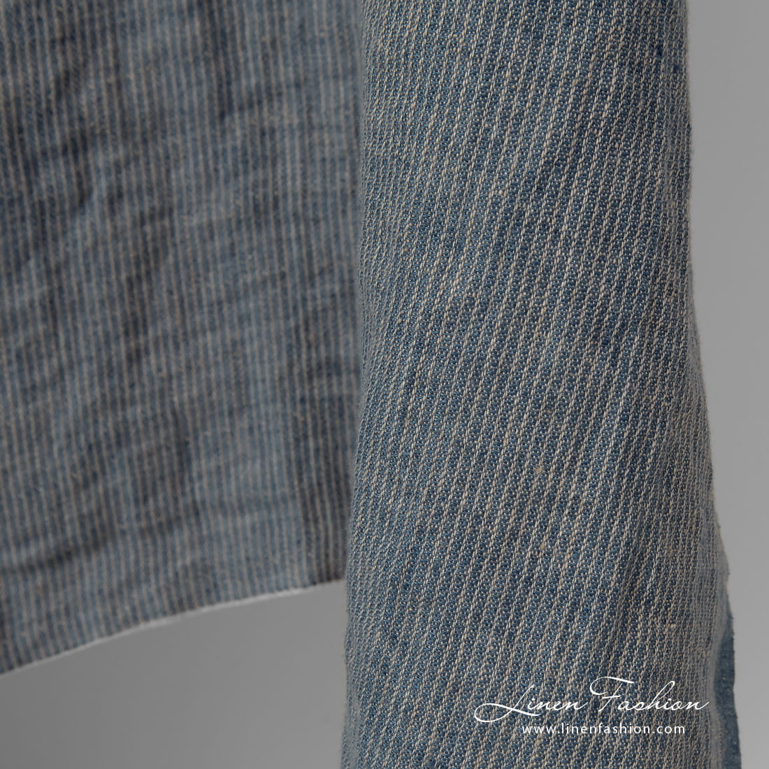 - Colour: mix of denim blue and brownish-grey (close to natural linen) colour yarns