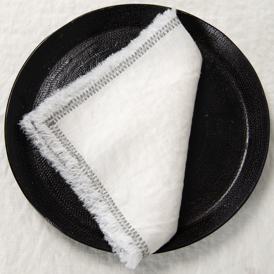 - Confection: 1,5 cm loose fringe, decorative seam in grey colour