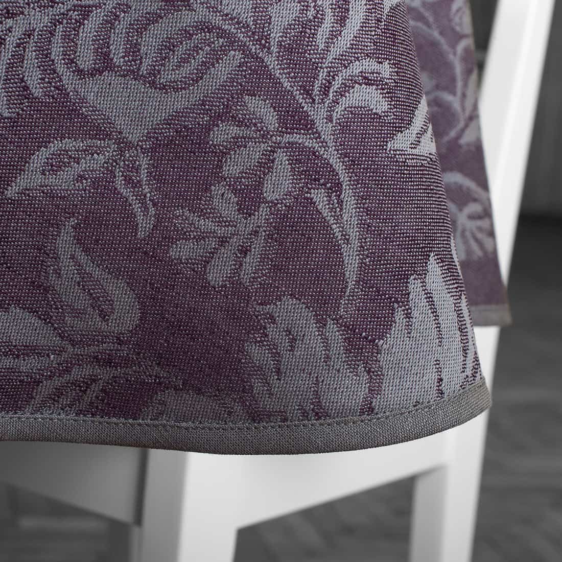 • Dark violet floral oval linen cotton tablecloth, piping hem