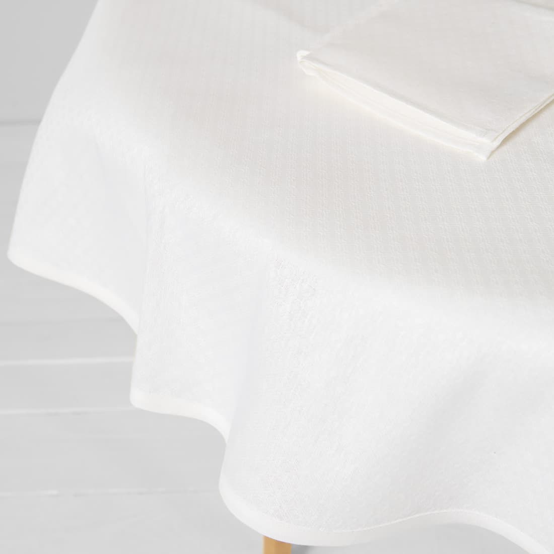• Round/oval linen cotton white tablecloth with matching napkins