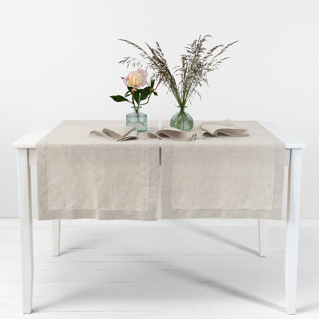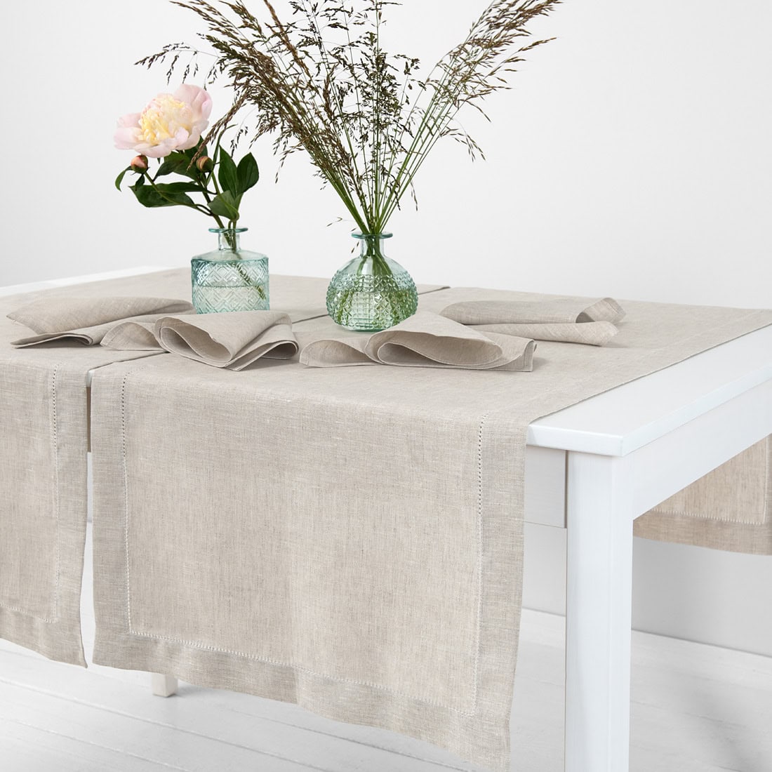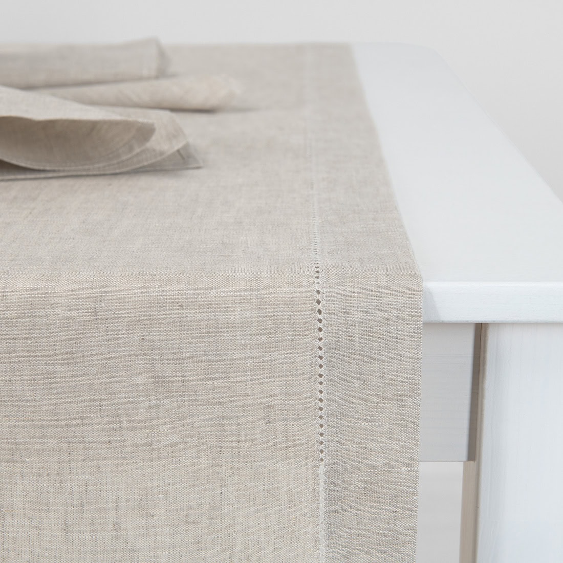 - Confection: 4 cm (1.57") folded border, hemstitch
