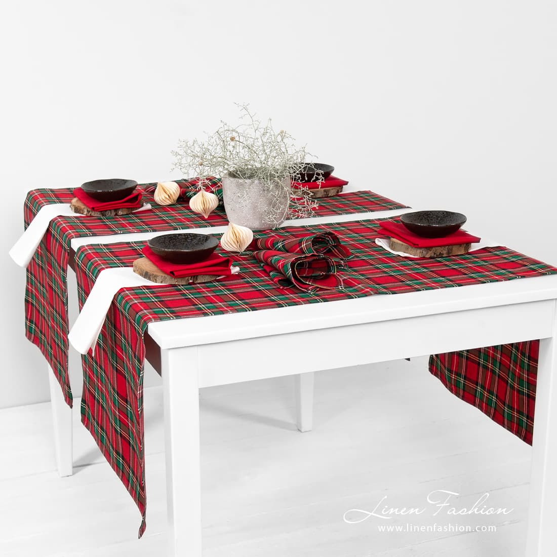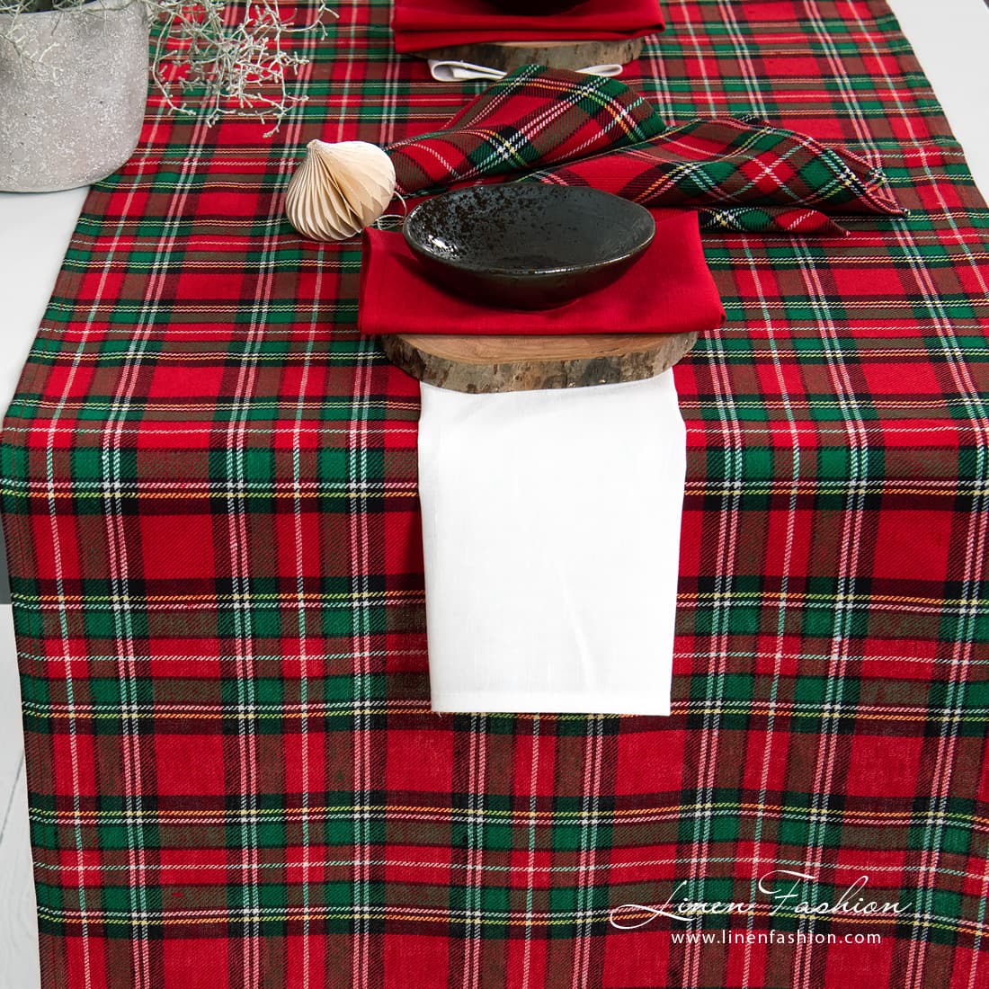 • Red checked runner.