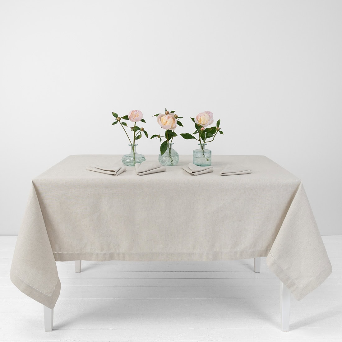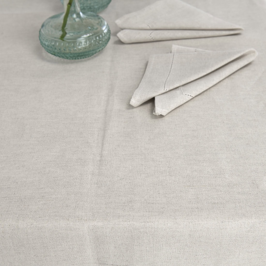 • Natural Beige Linen Cotton Tablecloth, with hemstitching