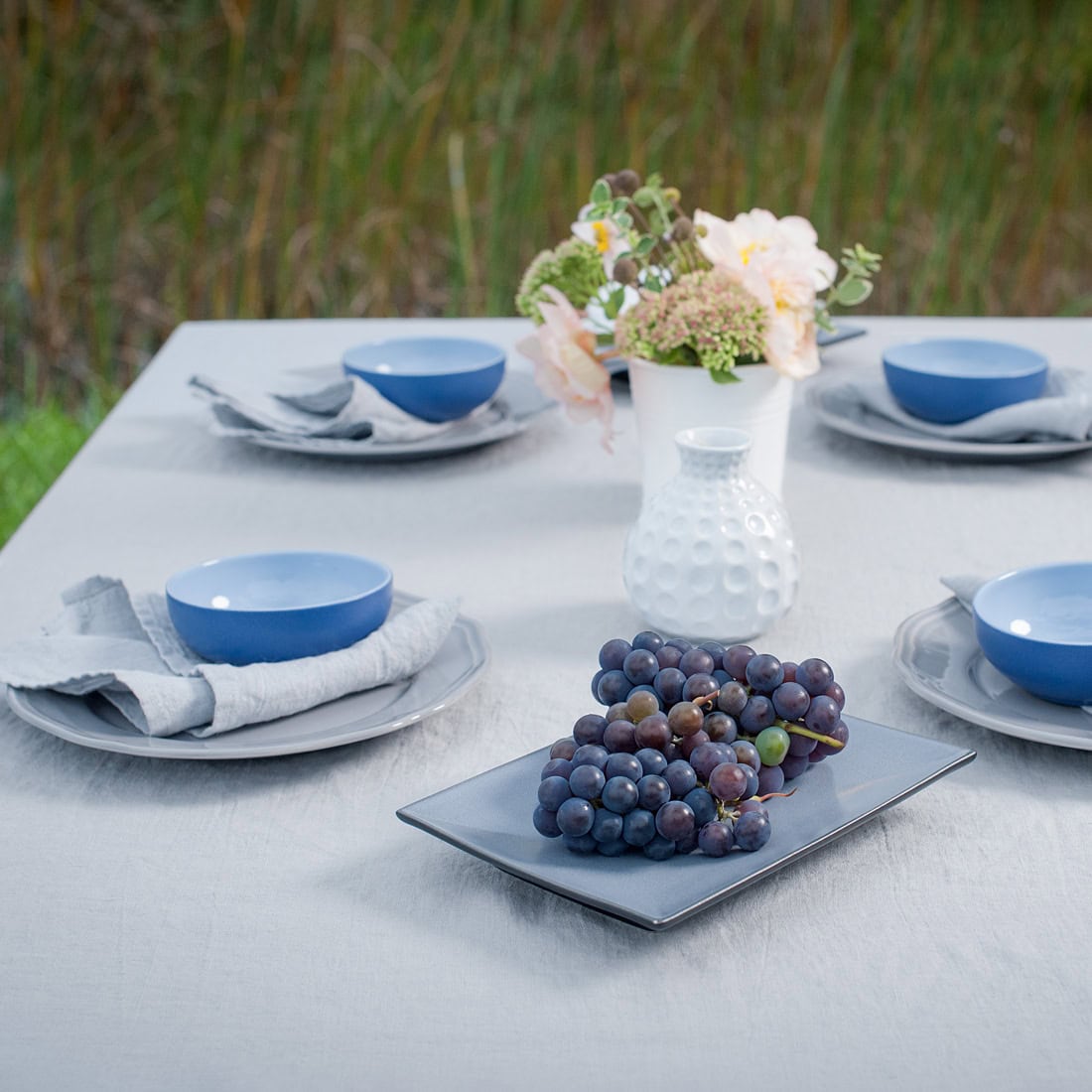 • Light grey linen tablecloth