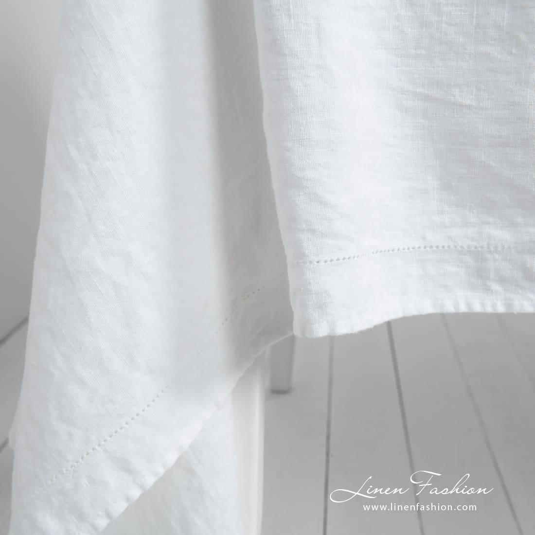 • NARA white linen tablecloth in hemstitch